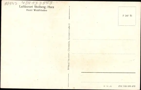 Ak Stolberg im Harz, Hotel Waldfrieden