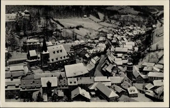 Ak Stolberg im Harz, Ort im Winter, Schnee, Luftbild