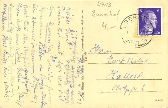 Zustand, siehe Scan, gelaufen, 1943 - ca 14 cm X 9 cm