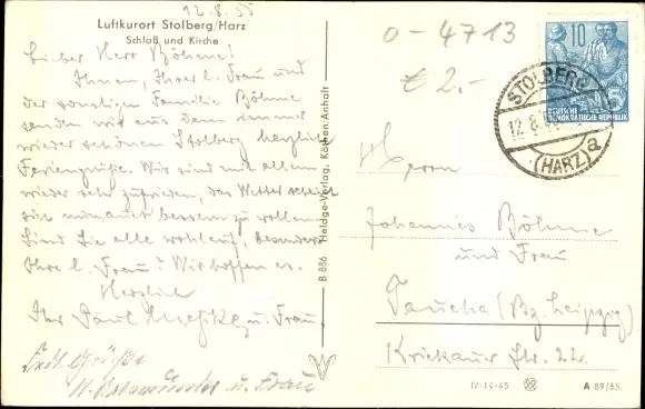 Ak Stolberg im Harz, Teilansicht mit Schloss und Kirche