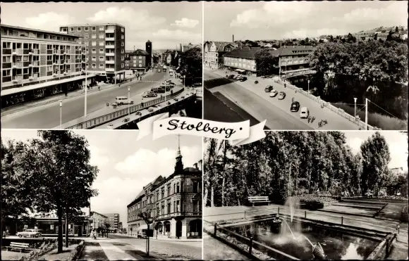 Ak Stolberg im Rheinland, Straßenansichten, Springbrunnen