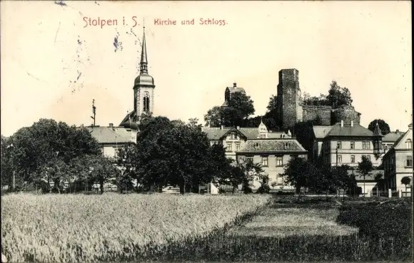 Ak Stolpen in Sachsen, Kirche und Schloss