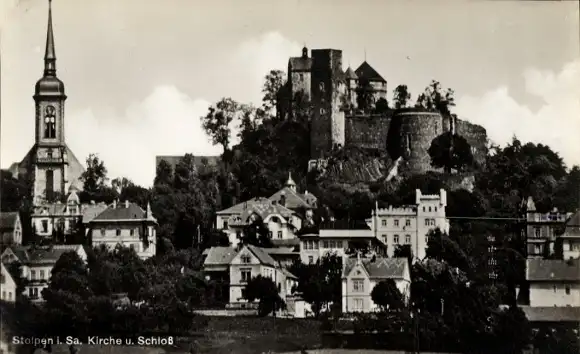 Ak Stolpen in Sachsen, Kirche und Schloss