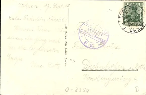 Zustand, siehe Scan, gelaufen, 1915 - ca 9 cm X 14 cm