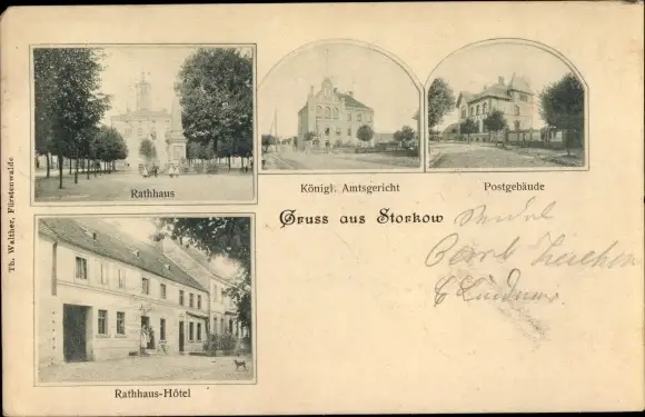 Ak Storkow in der Mark, Post, Amtsgericht, Rathaus, Hotel