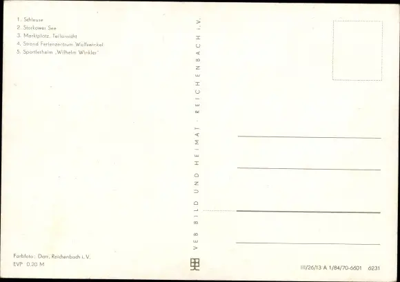Ak Storkow in der Mark, Schleuse, Markt, Strand Ferienzentrum Wolfswinkel, Sportlerheim W. Winkler