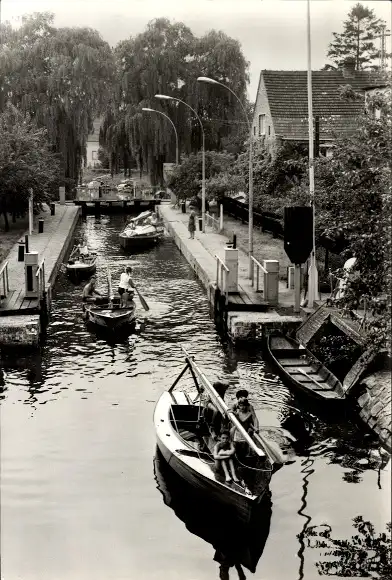 Ak Storkow in der Mark, Schleuse, Paddelboote
