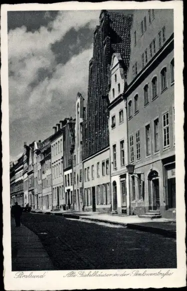 Ak Stralsund in Vorpommern, Alte Giebelhäuser, Semlower Straße