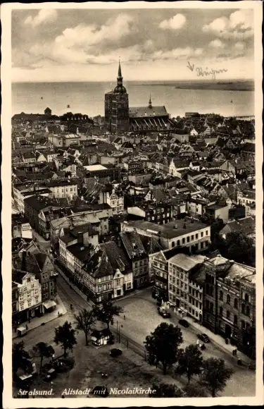 Ak Stralsund in Vorpommern, Altstadt mit Nikolaikirche