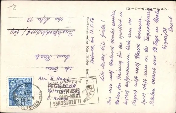 Zustand, siehe Scan, gelaufen, 1956 - ca 9 cm X 14 cm