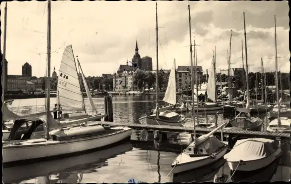 Ak Stralsund in Vorpommern, Blick in den Hafen, Boote