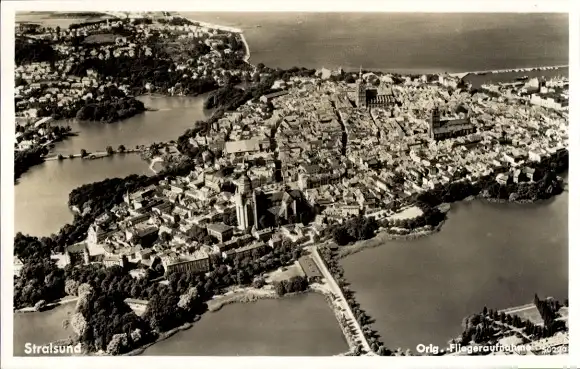 Ak Stralsund in Vorpommern, Fliegeraufnahme