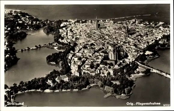 Ak Stralsund in Vorpommern, Fliegeraufnahme