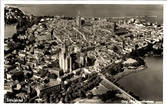 Ak Stralsund in Vorpommern, Fliegeraufnahme