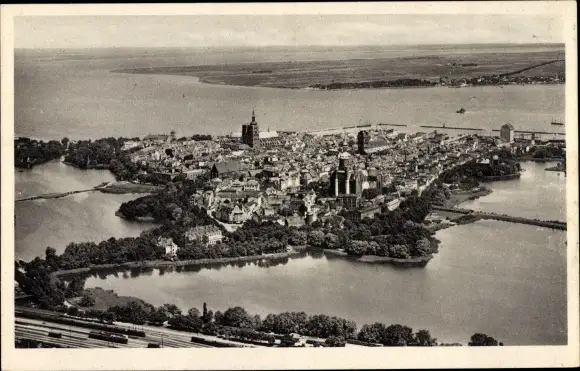 Ak Stralsund in Vorpommern, Fliegeraufnahme vom Ort