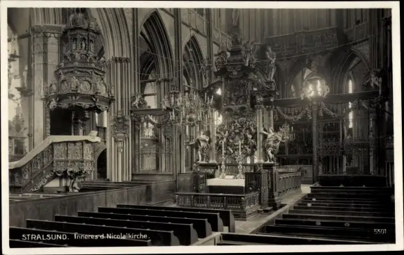 Ak Stralsund in Vorpommern, Inneres der Nikolaikirche