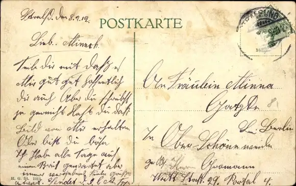 Zustand siehe Scan, 1912, gelaufen - ca 14 cm X 9 cm