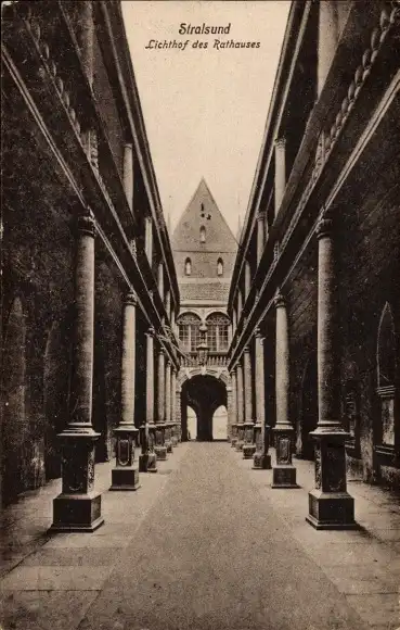 Ak Stralsund in Vorpommern, Lichthof des Rathauses