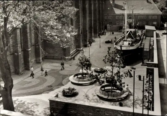 Ak Stralsund in Vorpommern, Meeresmuseum, Nordhof mit 17-m-Kutter