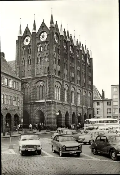 Ak Stralsund in Vorpommern, Rathaus, Bus, Autos