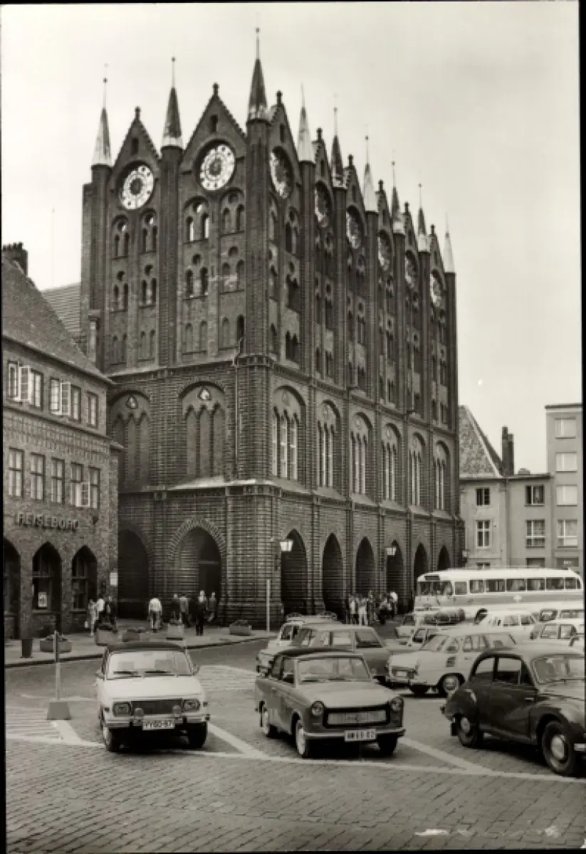 Ak Stralsund in Vorpommern, Rathaus, Bus, Autos