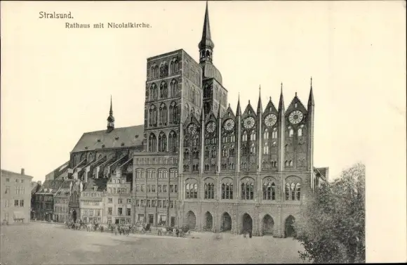 Ak Stralsund in Vorpommern, Rathaus mit Nicolaikirche