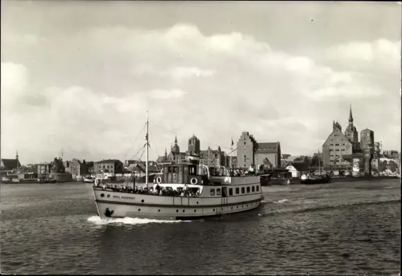 Ak Stralsund in Vorpommern, Schiff, Uferansicht