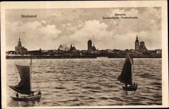Ak Stralsund in Vorpommern, Seeseite, Auslaufende Fischerboote