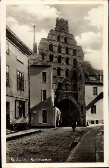 Ak Stralsund in Vorpommern, Semlowertor, Giebelhaus