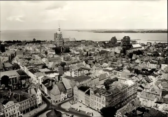Ak Stralsund in Vorpommern, Stadtpanorama, Kirchen