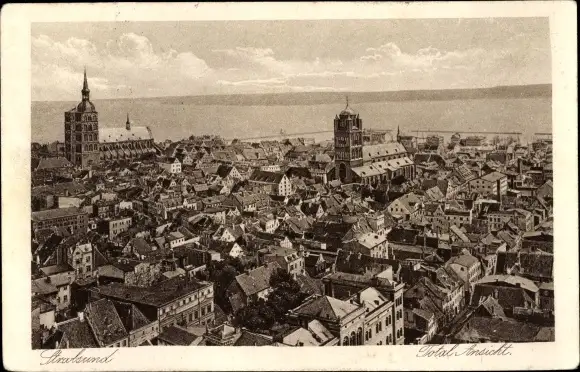 Ak Stralsund in Vorpommern, Stadtpanorama, Kirchen