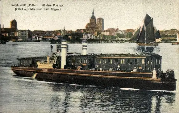 Ak Stralsund in Vorpommern, Trajektschiff Putbus mit D-Zug, Fährschiff nach Rügen