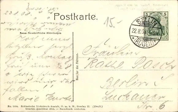Zustand, siehe Scan, gelaufen, 1908 - ca 14 cm X 9 cm