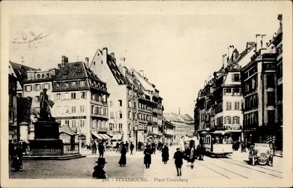 Ak Strasbourg Elsass Bas Rhin, Place Gutenberg, Tramway