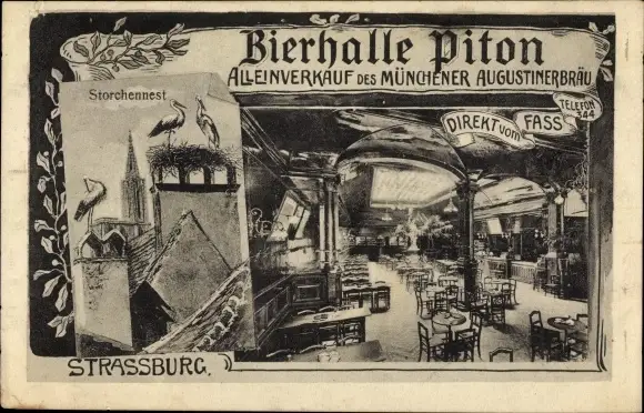 Ak Strasbourg Straßburg Elsass Bas Rhin, Bierhalle Piton, Augustinerbräu, Storchennest