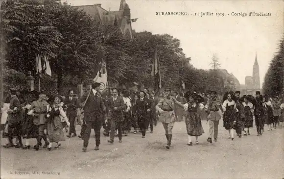 Ak Strasbourg Straßburg Elsass Bas Rhin, Cortege d'Etudiants, 1919