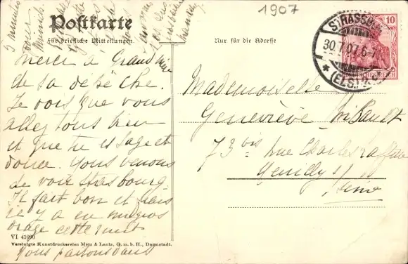 Zustand, siehe Scan, gelaufen, 1907 - ca 14 cm X 9 cm