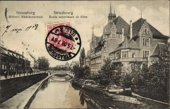Ak Strasbourg Straßburg Elsass Bas Rhin, Höhere Mädchenschule, Brücke