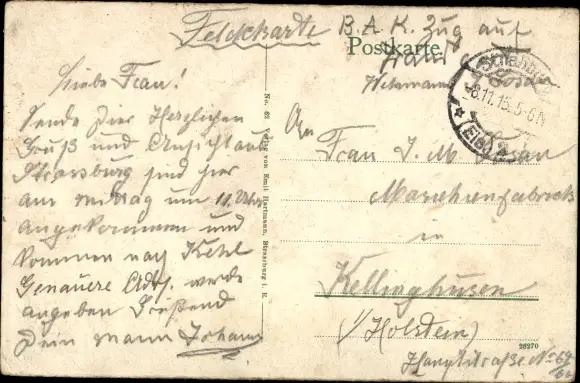 Zustand, siehe Scan, gelaufen, 1915 - ca 14 cm X 9 cm