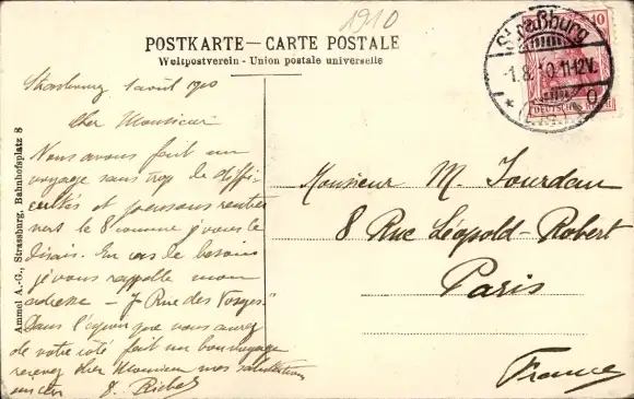 Zustand, siehe Scan, gelaufen, 1910 - ca 9 cm X 14 cm