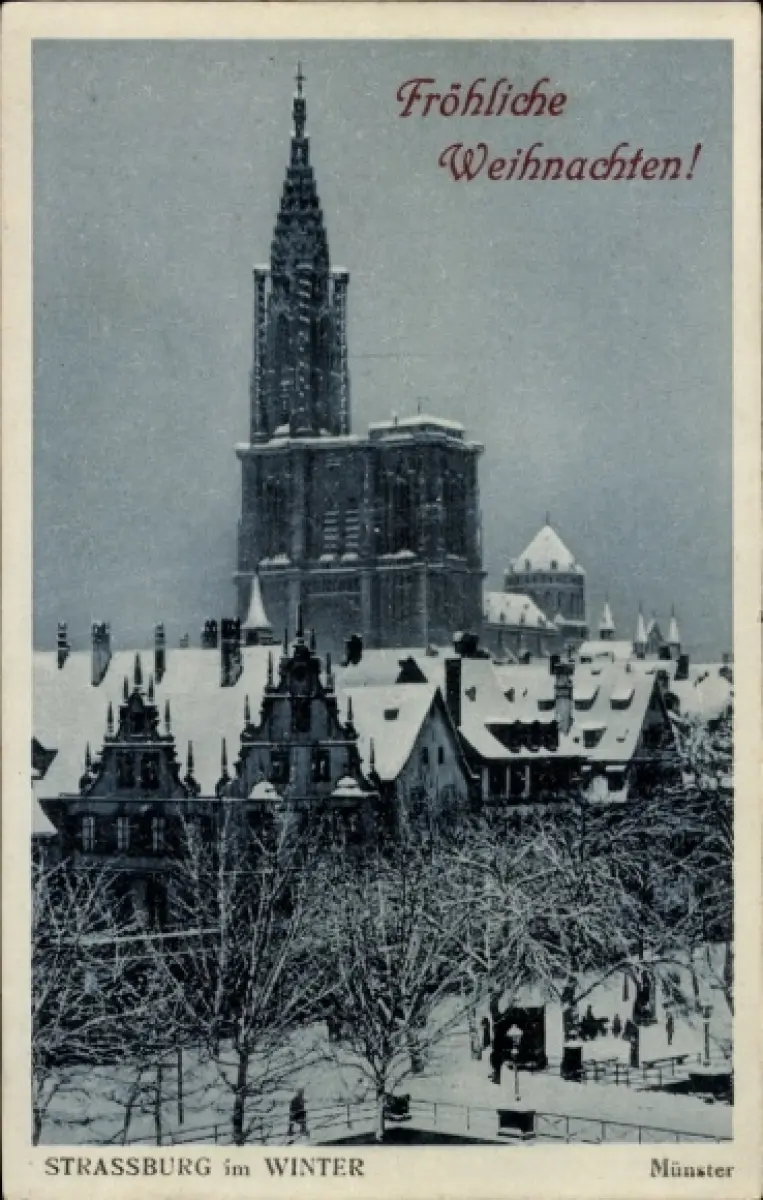 Ak Strasbourg Straßburg Elsass Bas Rhin, Münster, Winter, Fröhliche Weihnachten