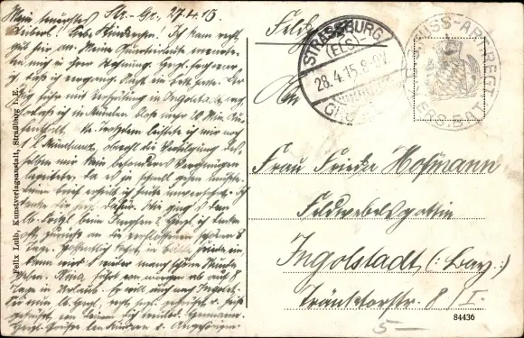 Zustand, siehe Scan, gelaufen, 1915 - ca 14 cm X 9 cm