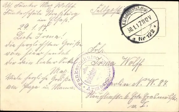 Zustand, siehe Scan, gelaufen, 1917 - ca 14 cm X 9 cm