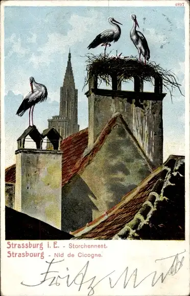 Ak Strasbourg Straßburg Elsass Bas Rhin, Storchennest