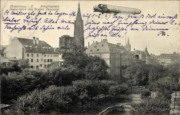 Ak Strasbourg Straßburg Elsass Bas Rhin, Zeppelin, Broglieplatz