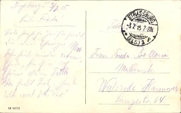 Zustand siehe Scan, gelaufen, 1915 - ca 5 cm X 3 cm