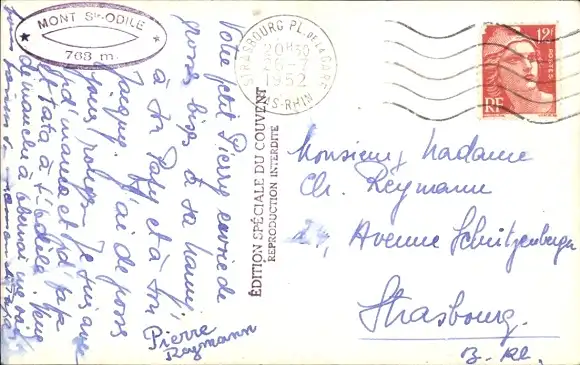 Zustand, siehe Scan, gelaufen, 1952 - ca 9 cm X 14 cm