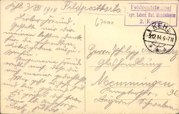Zustand, siehe Scan, gelaufen, 1914 - ca 14 cm X 9 cm