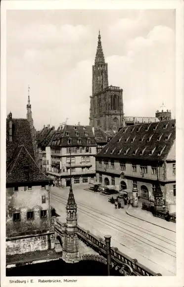 Ak Straßburg Elsass Bas Rhin, Rabenbrücke, Münster