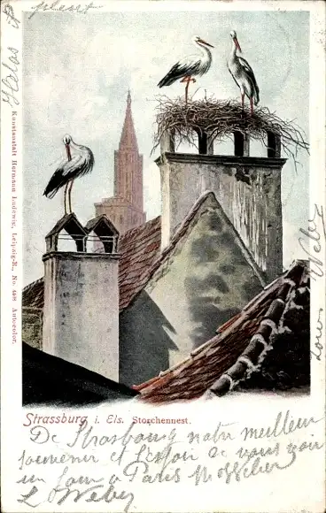 Ak Straßburg Elsass Bas Rhin, Storchennest